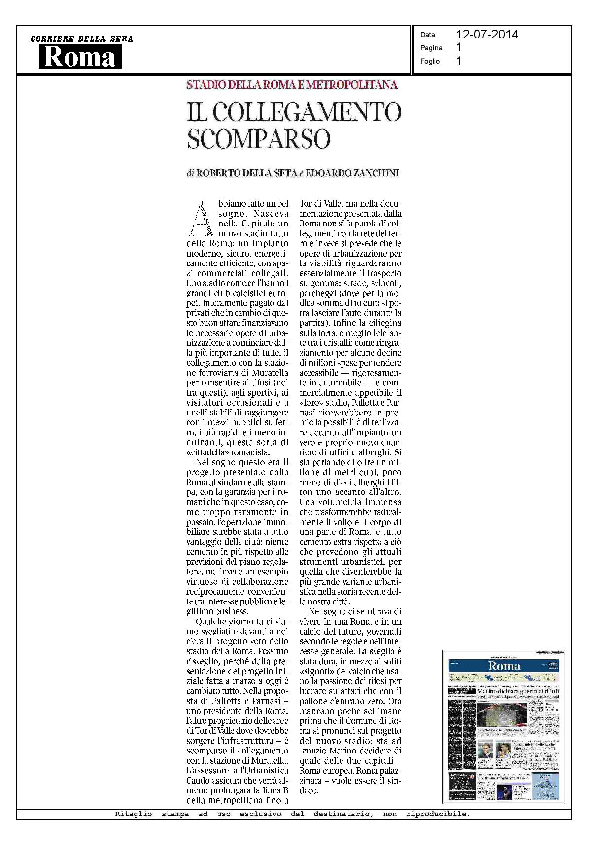Articolo di Roberto Della Seta e Edoardo Zanchini sul Corriere della Sera –