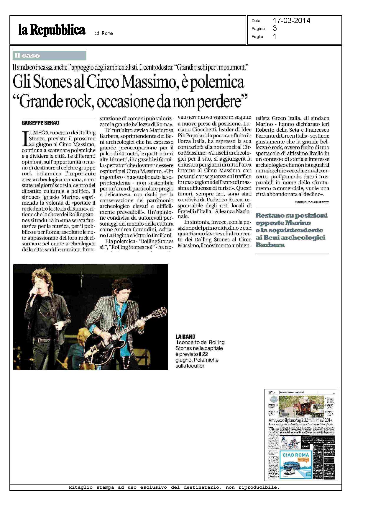 “Roma ha bisogno di essere riportata all’attenzione del mondo per quello che è, ovvero una città dalla storia e bellezza unica.E l’immagine di uno dei suoi luoghi simbolo, il Circo Massimo, inondato dalle note dei Rolling Stones, il gruppo rock per antonomasia, è un’occasione da non perdere. Chi vi si oppone a prescindere non vuole il bene di Roma, ma vuole che la città si chiuda al mondo”.